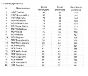 Zachodniopomorskiego „Młodzież Ratuje Życie” w Trzebierzy za nami. Nasza drużyna w składzie dh. Zuzanna Głodkowska, dh. Lena Kazimierczak i dh Marcin Urbańczyk zajęła w klasyfikacji generalnej 6 miejsce ( 3 miejsce z teorii i 6 z praktyki) na 20 startujących drużyn.Dziękujemy drużynie za 2 miesiące przygotowań i godne reprezentowanie naszej Jednostki ![]()